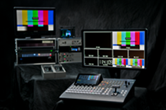 output options, including DVI, VGA, SDI, YRB and HD-SDI for integration of computers, cameras, record/ playback devices, and other sources as well as outputting HD and computer signals. A 23" multi-view monitor is provided so that all sources can be seen on one display. Four auxiliary output buses are provided for